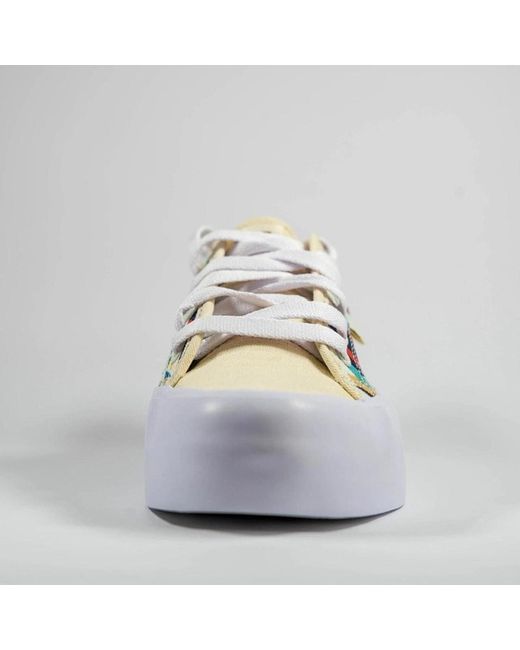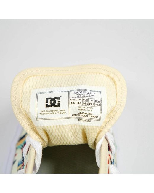 Step up your style with these DC platform sneakers featuring a vibrant geometric pattern. The cream canvas upper is lightweight and breathable, perfect for casual wear. The thick white platform sole adds height and a trendy edge to your outfit. Ideal for everyday comfort and a bold look!