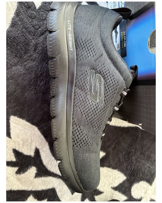 The Skechers shoes are a stylish pair of trainers with a low top shaft design, suitable for casual occasions and walking activities. These standard-width sneakers feature memory foam for added comfort and come in a sleek black colour with the Skechers logo as accents. Perfect for summer days, these shoes are a versatile option for both men and women in UK size 8. The rubber cleat type and fabric lining material make them a practical and fashionable choice for sports-themed wear.