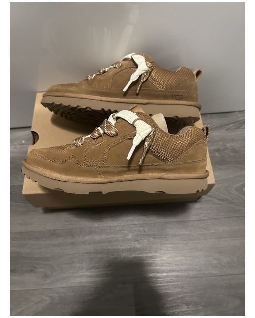 The UGG Lo Lowmel Trainers in Chestnut, size 3 UK, are stylish sneakers designed for women. Featuring a lace-up closure, these trainers offer a comfortable and secure fit. The brown colour and iconic UGG branding make them a versatile and fashionable choice for everyday wear. The UGG Lowmel product line ensures high-quality craftsmanship and timeless style that is sure to make these trainers a staple in any woman's wardrobe.