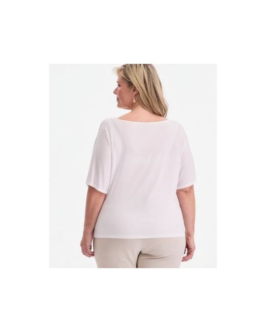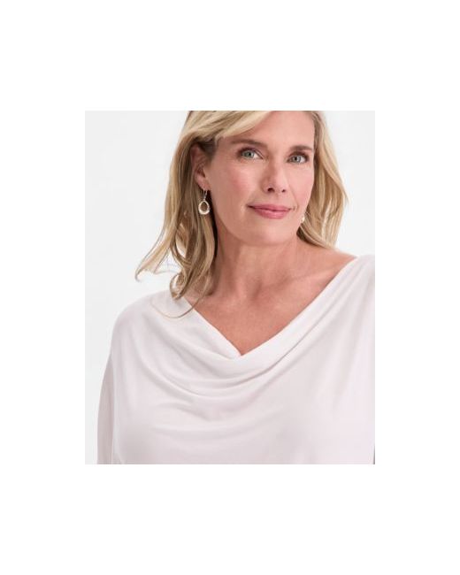 A floaty piece that helps you move comfortably through your day, this plus size top from Jm Collection has a draped neck and roomy flutter sleeves.