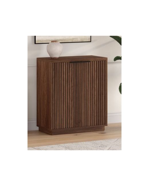Keep your home office, family room, or bedroom organized without sacrificing style. This sturdy and compact accent cabinet is designed to give you a flexible storage option wherever you need it, whether it's for office supplies, closet overflow, or just the various knick-knacks and doodads that have a space of their own. Featuring an adjustable center shelf and cable management cut-out, this versatile cabinet can even help you organize printers, game consoles, or charging stations. The wood-grained finish and fluting details create an on-trend shape and textural appeal while the hidden storage behind the two cabinet doors allows you to hide away all the odds and ends that create visual clutter around your home.