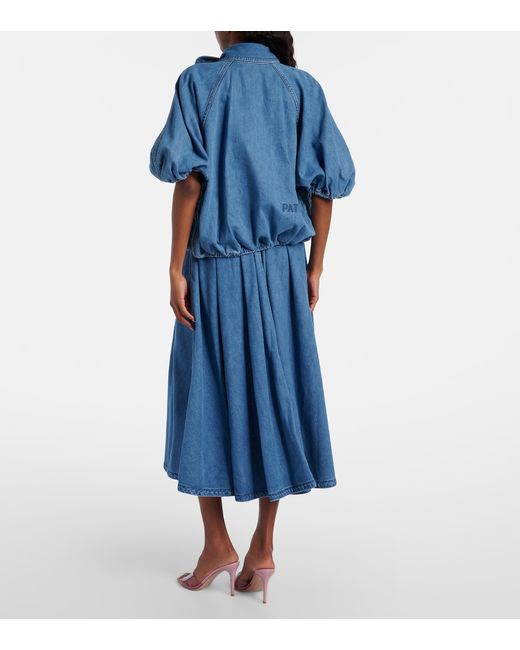 Material: 72% cotton, 28% viscose. Care instructions: machine wash at 30 degrees. Made in Tunisia. Designer color name: Heritage Blue Wash. Lining: 100% cotton. Hardware color: gold. Pockets: slit pockets. Closure: buttoned front. Cotton.