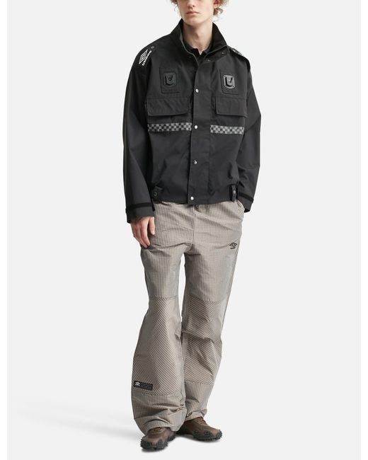 UmbroUmbro x Slam Jam Force JacketUmbro x Slam Jam collaborationRegular fitMade of polyamideStand-up collarConcealed two-way zipper closureAdjustable velcro cuffsEpaulette with embroidered logoTwo chest pocketsCheckered trim at waistElasticated hemColor: Black