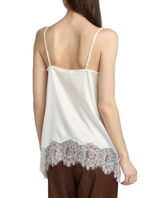 Crafted of silk, the Chloe tank top from Staud is tailored in a relaxed fit and features an asymmetric lace-trimmed hemline. Scoop neck Spaghetti straps Pulls over 93% silk/7% spandex Dry clean Imported SIZE & FIT About 27" from shoulder to hem Model measurements: 5'10" tall Model is wearing a US size Small. Contemporary Sportswear - Advanced Contemporary > Staud > Saks Fifth Avenue. Staud. Color: Ivory. Size: XS.