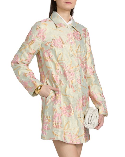 The Halton slightly A-line jacket from Staud blooms with a floral brocade featuring contrasting buttons for added dimension. Spread collar Long sleeves Side slit pockets Button-front closure 70% polyester/17% metallic/13% nylon Lining: 100% polyester Dry clean Imported SIZE & FIT About 34" from shoulder to hem Model measurements: 5'10" tall Model is wearing a US size Small. Contemporary Sportswear - Advanced Contemporary > Staud > Saks Fifth Avenue. Staud. Color: Botanica Aloe. Size: XS.