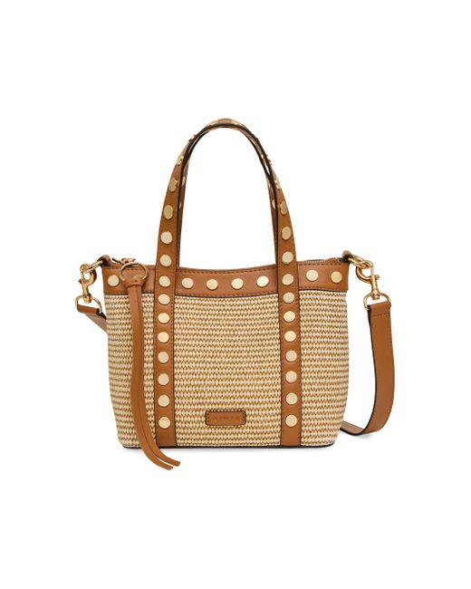 Meet your new power mini. The Jagger Mini Tote keeps it light and luxe with signature studded details and a structured silhouette that works from weekday meetings to weekend plans. Small in size, big in personality, this mini makes a bold statement while carrying just what you need. 100% Genuine leather Signature studded detailing Main entry zip closure Adjustable & removable chain crossbody strap Top handle Exterior: 1 back slip pocket Interior: 1 zip pocket Top handle drop: 5.25'' Crossbody strap drop: 19.75'' - 22.75'' Dimensions: 9'' L x 7.5'' H x 4.75'' W Weight: 1.2 lbs Imported. Lsd Handbags - Handbag/accessories Lsd > Aimee Kestenberg > Saks Fifth Avenue. Aimee Kestenberg. Color: Raffia Latte.