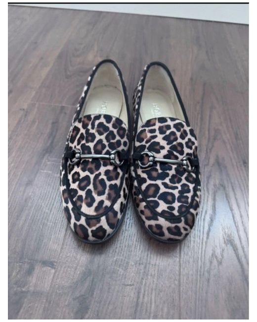 These Hobbs leopard print loafers in size 36 (UK 3) are a stylish and versatile choice for women looking for a unique addition to their wardrobe. Made from high-quality Italian leather, these flat loafers feature an almond toe shape and a mink leopard colour, adding a touch of femininity to any outfit. The outsole is also leather, ensuring durability and comfort for all-day wear. Perfect for adding a pop of personality to your shoe collection, these loafers are a must-have for those who appreciate both style and functionality in their footwear.