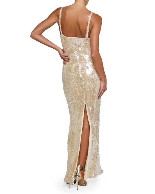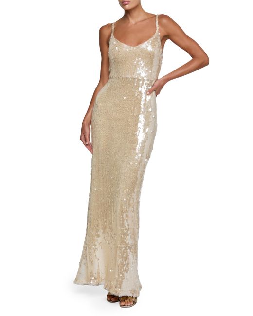 L'AGENCE's floor-sweeping Karma maxi dress is a masterclass in high-octane glamour, fully embellished with shimmering sequins that catch the light with every movement. A deep V-neckline and sophisticated back slit provide a sultry yet refined edge, embodying the brand's signature blend of red-carpet drama and effortless evening elegance. V-neck Spaghetti straps Back slit Concealed back zip closure 100% polyester Spot clean Imported SIZE & FIT About 52" from shoulder to hem Model measurements: 5'10" tall Model is wearing a US size 4 ABOUT THE BRAND Founded in 2008, L'Agence marries Southern California ease with chic Parisian style. Using luxurious fabrics, the Los Angeles-based label delivers feminine collections that are both timeless and versatile. In 2015, the label launched a denim line in a range of sleek, impeccably tailored cuts. Contemporary Sportswear - Workshop > L'agence > Saks Fifth Avenue. L'AGENCE. Color: Clear Beige Sequin. Size: 2.