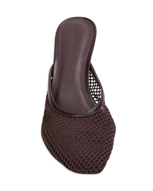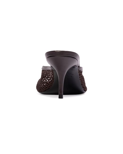 Angled round toe mesh mules, set on a curved mid heel. Made with smooth buffed leather and mesh. Heel Height: 65mm / 2.5 inches Upper: Leather Sock: Leather Lining: Satin - Sole: Leather Imported. Lsd Shoes - Shoes Lsd Mp > Black Suede Studio > Saks Fifth Avenue. Black Suede Studio. Color: Black Coffee Leather. Size: 5.