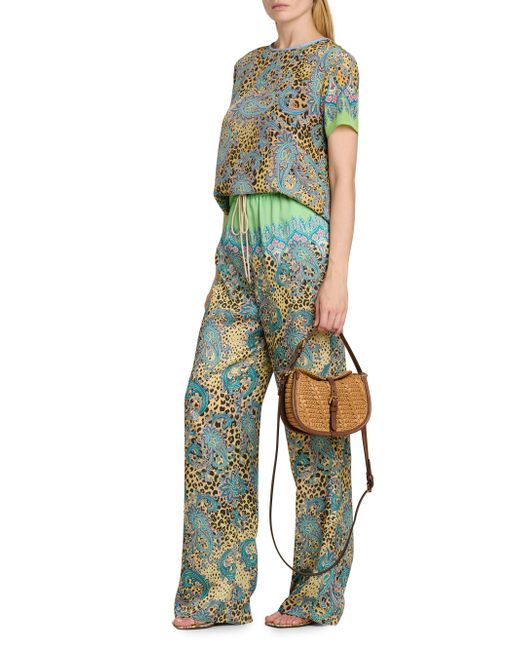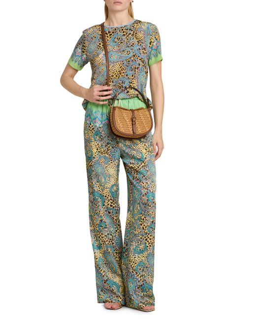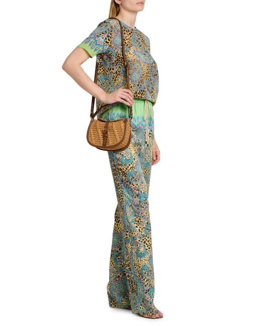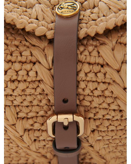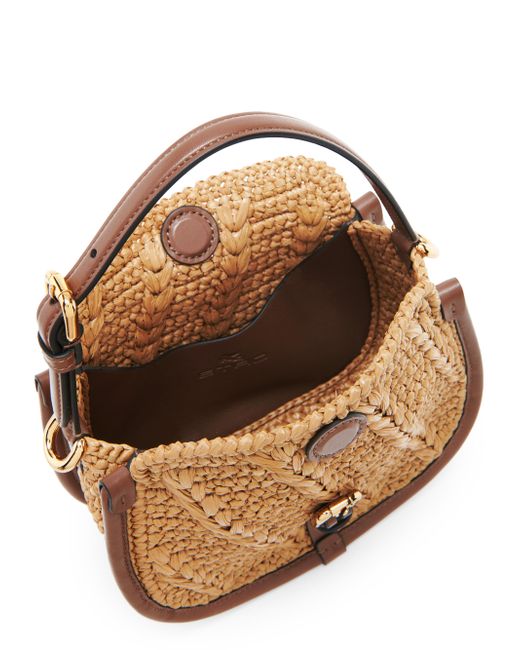 Made in Italy, the crossbody bag from Etro is crafted of woven material and features a leather strap with a magnetic closure. Top handle Adjustable crossbody strap Magnetic closure 100% viscose Trim: leather Made in Italy ABOUT THE BRAND The Italian fashion house renowned for its eclectic prints and signature paisley motif has been a family-run business since its inception in 1968. Creative Director Marco de Vincenzo continues the brand's legacy with the rich textiles and patterns still used in its clothing, accessories and home décor. Handbags - Italian Designer Handbag > Etro > Saks Fifth Avenue. Etro. Color: Cammello.