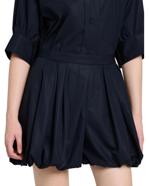 Crafted of cotton poplin, these Jil Sander shorts are designed with voluminous gathered pleats and a bubble hem. Bubble hem Side on-seam pockets Concealed side zip closure 100% cotton Hand wash Made in Italy SIZE & FIT Tailored fit Rise: about 12" Inseam: about 5" Leg opening: about 12" Model measurements: 5'10" tall Model is wearing a US size 4 ABOUT THE BRAND Known for its simple sophistication, German label Jil Sander is dedicated to a pure design aesthetic and exceptional craftsmanship. Launched in 1968, the brand focused on clean lines, later evolving to epitomize luxury clothing for a new generation of businesswomen. Since 2017, Creative Directors Lucie and Luke Meier have revitalized the company's offerings, staying true to its roots with crisp tailoring and refined silhouettes. Advanced European - Adv European > Jil Sander > Saks Fifth Avenue. Jil Sander. Color: Navy. Size: 0.