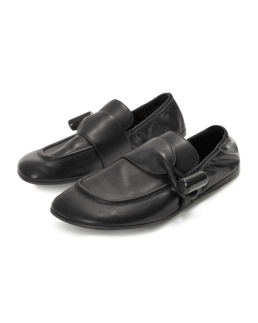 Crafted of leather, these Toggle loafers from LOEWE feature an apron toe and a toggle detail on the side. Apron toe Slips on Leather upper Leather lining Made in Italy ABOUT THE BRAND For over 179 years, LOEWE has been synonymous with classic luxury and expertise in fine leather and tailoring. The Spanish house's latest chapter hones in on redefining the craft through an intellectual-yet-playful approach to fashion thanks to the modern eyes of design duo Jack McCollough and Lazaro Hernandez. The line's bold and vibrant take on the Spanish lifestyle is infused in its effortlessly chic handbags, shoes, ready-to-wear and accessories for women and men. Women's Shoes - French Designer W Shoes > Loewe > Saks Fifth Avenue. LOEWE. Color: Black. Size: 9.