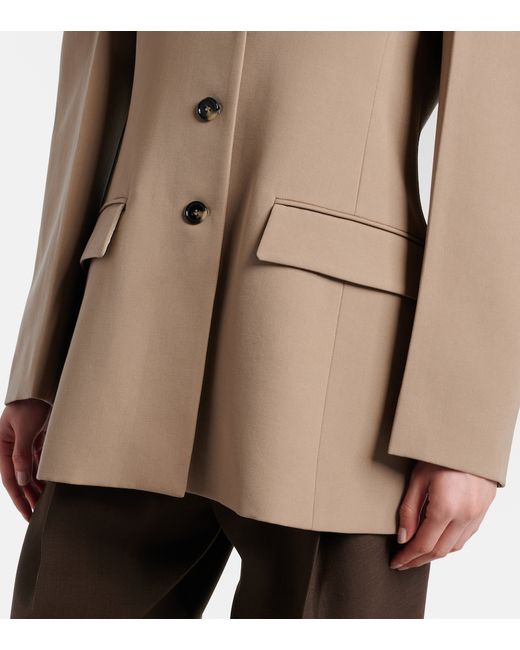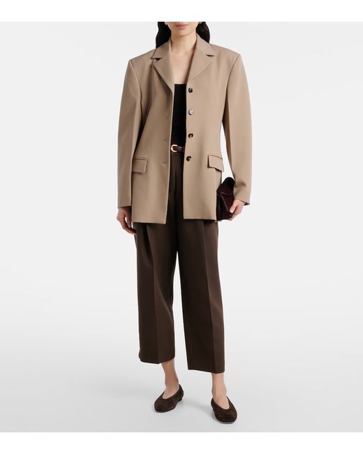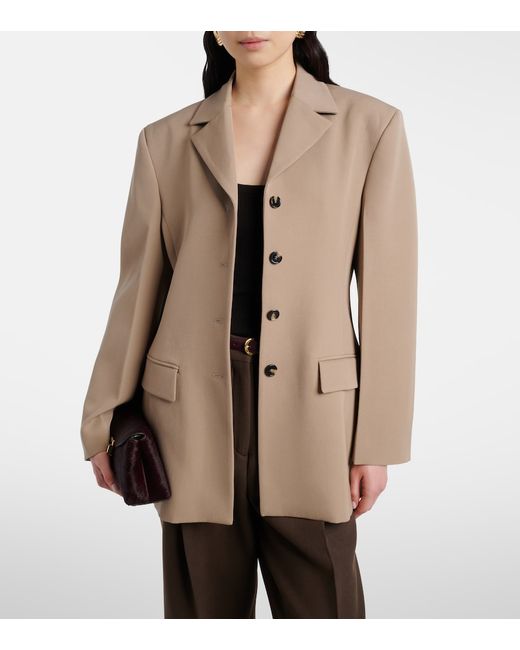 Material: 100% wool. Care instructions: dry clean. Made in Italy. Designer color name: Tahini. Lining: 67% viscose, 33% polyester. Closure: single-breasted. Pockets: flap pockets. Wool.