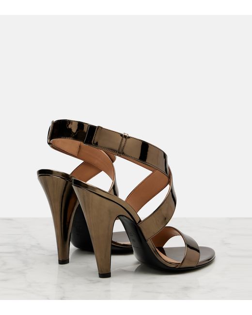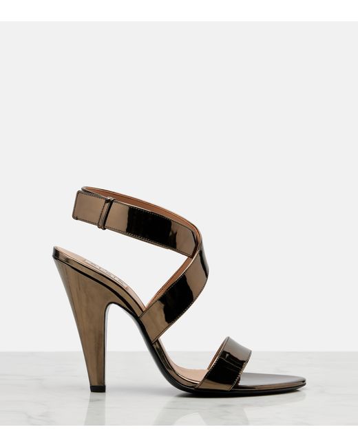 Upper: leather. Lining: leather. Sole: leather insole and sole. Toe shape: pointed open toe. Made in Italy. Includes: shoe box. Designer color name: Brun Metal. Hardware color: silver. Closure: buckle-fastening ankle strap.