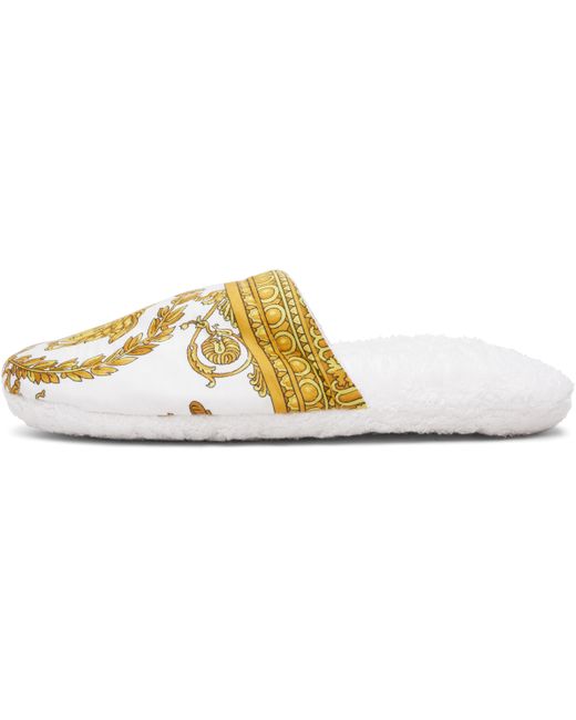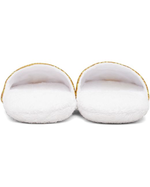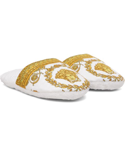 Cotton sateen slippers. · Baroque pattern printed throughout · Medusa printed at vamp · Terrycloth lining · Terrycloth sole Supplier color: White/Gold