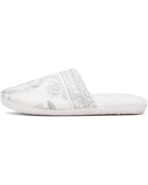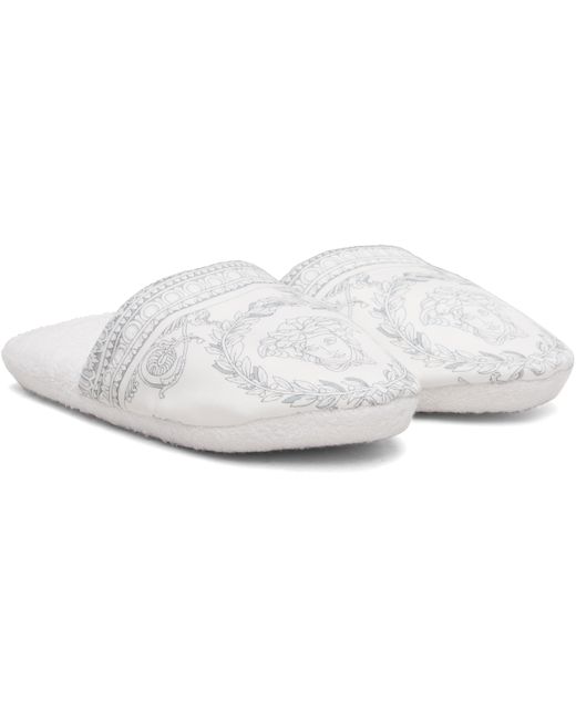 Cotton sateen slippers. · Baroque pattern printed throughout · Medusa printed at vamp · Terrycloth lining · Terrycloth sole Supplier color: White/White