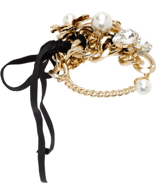 Curb chain bracelet in gold-tone. · Faux-pearls, crystals, and floral charms at front · Lace up-detailing and bow at front · Faux-pearl at spring-ring fastening · L9 Supplier color: Gold