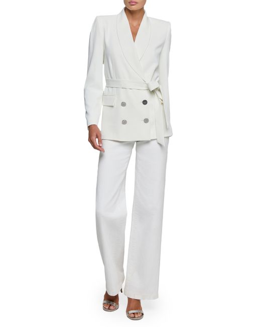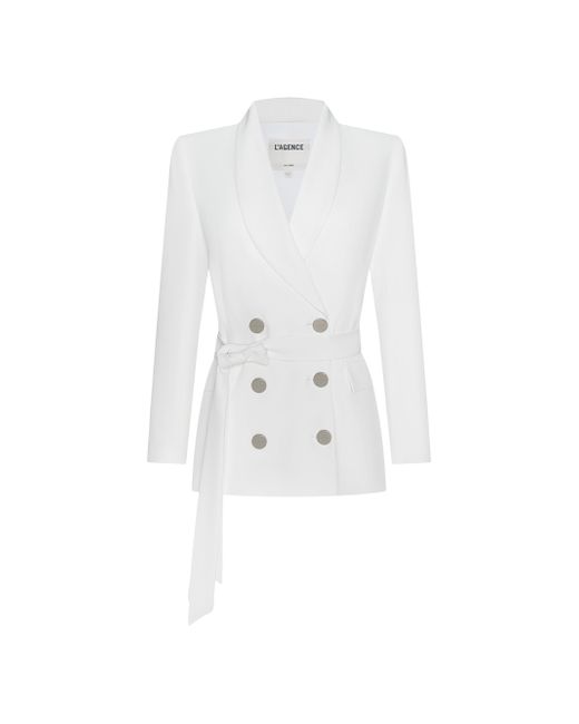 L'AGENCE's Aven wrap blazer features a double-breasted design, self-tie detail, and front flap pockets. Shawl lapels Long sleeves Front flap pockets Double-breasted button closure 97% polyester/3% spandex Dry clean Imported SIZE & FIT About 27.75" from shoulder to hem Model measurements: 5'10" tall Model is wearing a US size 4 ABOUT THE BRAND Founded in 2008, L'Agence marries Southern California ease with chic Parisian style. Using luxurious fabrics, the Los Angeles-based label delivers feminine collections that are both timeless and versatile. In 2015, the label launched a denim line in a range of sleek, impeccably tailored cuts. Contemporary Sportswear - Workshop > L'agence > Saks Fifth Avenue. L'AGENCE. Color: Ivory. Size: 0.