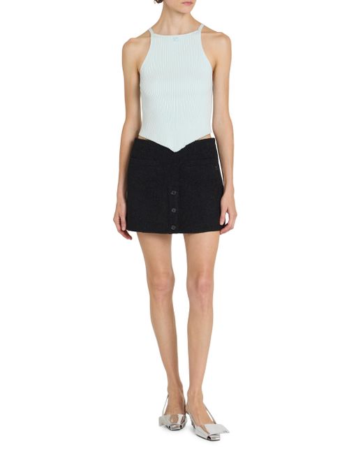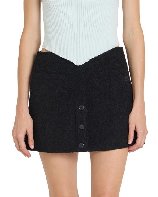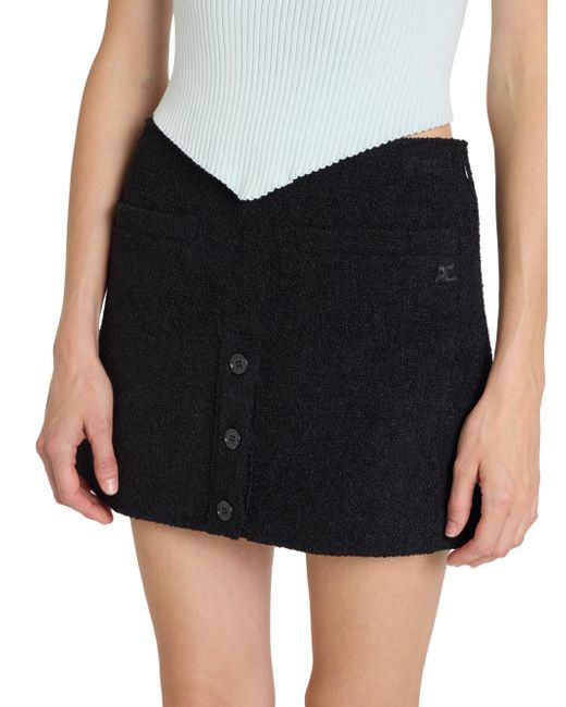 Crafted of tweed, this miniskirt from Courreges features welt pockets and a half button placket at the center front hem. The A-line silhouette is finished with a tonal embroidered logo at the left hip. Belt loops Side welt pockets Center front button detail 60% polyester/33% cotton/5% polyamide/2% other fibers Combo: 100% viscose Dry clean Made in Portugal SIZE & FIT Model measurements: 5'10" tall Model is wearing a US size 4. Advanced Designer - Designer Collections > Courreges > Saks Fifth Avenue. Courreges. Color: Black. Size: 2.