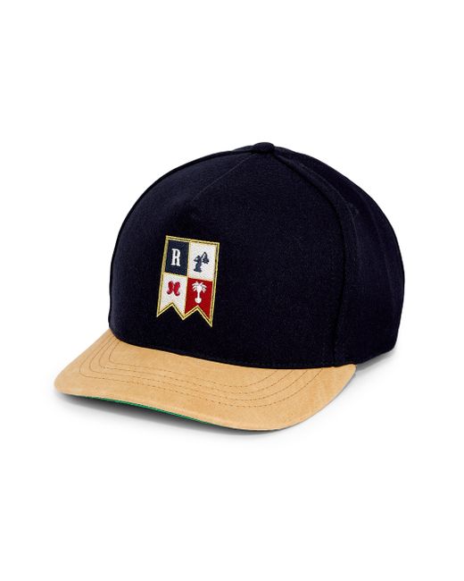This Rhude hat is embroidered with a Harbor Crest motif on the face. 50% wool/ 50% polyester Combo: 100% cotton Trim: leather Twill: 65% polyester, 35% cotton Made in USA ABOUT THE BRAND Rhuigi VillaseƱor merges luxury techniques with streetwear silhouettes, all born out of the designer's L.A. studio. His collections are steeped in nostalgic references to classic American iconography, and have found fans among style-conscious musicians and athletes. Men Accessories - Mens Contemp Access > Rhude > Saks Fifth Avenue. Rhude. Color: Navy Brown.