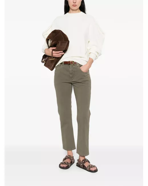 olive green topstitching belt loops button fastening five pockets