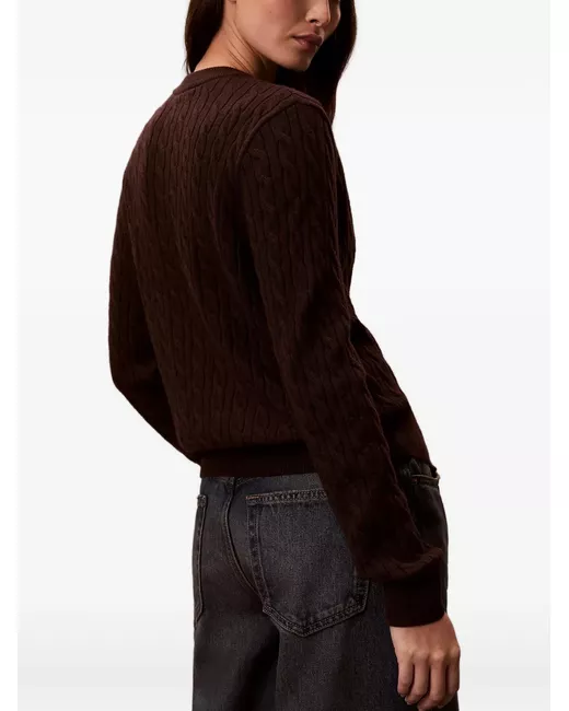 brown cable knit button fastening round neck long sleeves ribbed cuffs
