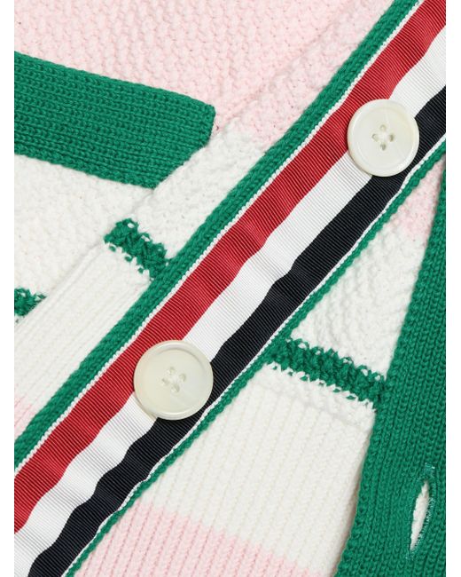 Crafted of soft cotton in a seed-stitch knit, this cardigan from Thom Browne features a striped finish with a V-neck and waist patch pockets. V-neck Long sleeves Waist patch pockets Button-front closure 100% cotton Dry clean Made in Italy SIZE & FIT Model measurements: 6'2" tall, 40" chest Model is wearing a US size 40. Men Advcd Dsgnr - Mens Advanced Drtw > Thom Browne > Saks Fifth Avenue. Thom Browne. Color: Light Pink. Size: Medium.