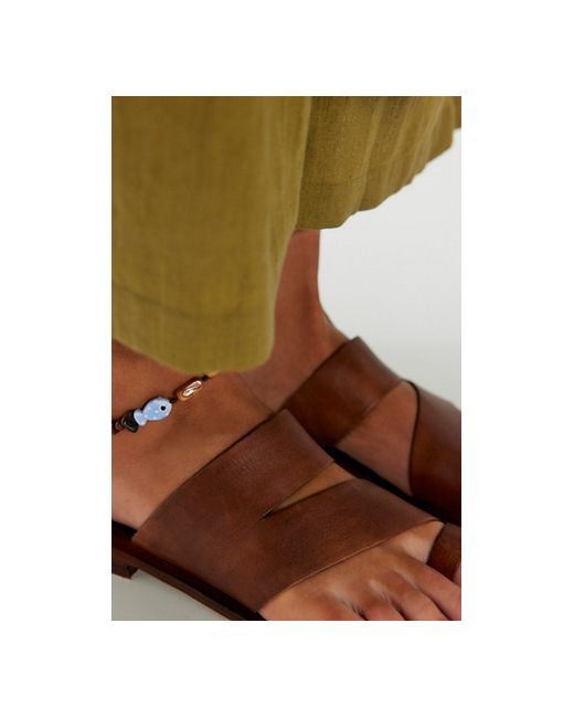 So simple, go-to sandals featured in a buttery soft leather and flat-sole style with wide straps, toe-loop detailing, and a cozy cushioned footbed. * Flat sole * Slip-on style * Cushioned footbed Abilene Toe Loop Sandals by Free People in Luggage, Size: EU 36.5