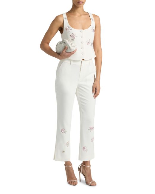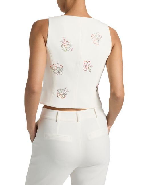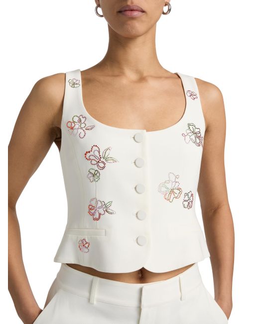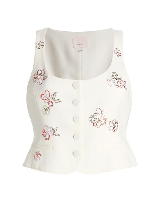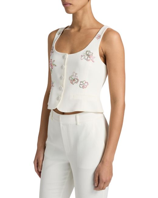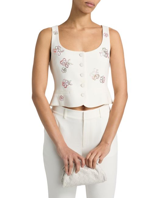 The Rowena vest-inspired top from Cinq à Sept is accented with a blooming, linework crystal-embellished floral pattern. Scoopneck Sleeveless Button-front closure 69% triacetate/31% polyester Dry clean Imported SIZE & FIT About 18.75" from shoulder to hem Model measurements: 5'10" tall Model is wearing a US size Small ABOUT THE BRAND Inspired by the radiant, magical hours between 5 and 7 PM-which is what the label's French name translates to-founder Jane Siskin designs sophisticated, feminine pieces for both workweek and the weekend. The designer's silhouettes also play with volume and eye-catching trimmings-perfect for cocktails or a special night out. Contemporary Sportswear - Cinq A Sept > Cinq à Sept > Saks Fifth Avenue. Cinq à Sept. Color: Ivory Multi. Size: XXS.