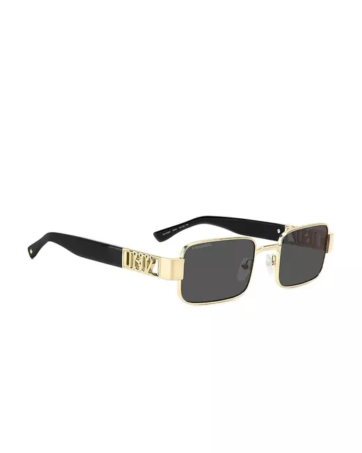 black rectangle frame grey lenses logo detail arm straight arms These glasses come with a protective case.