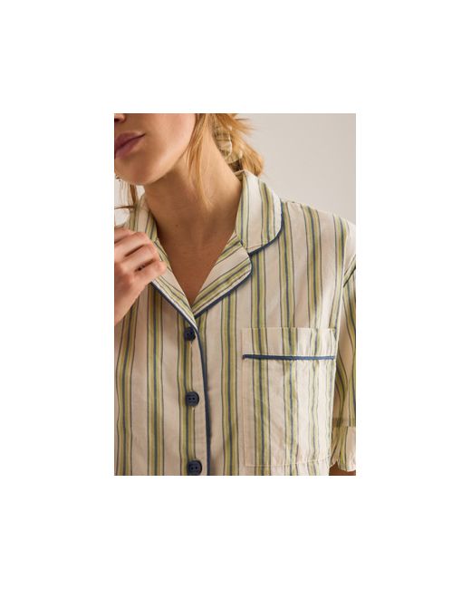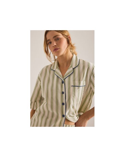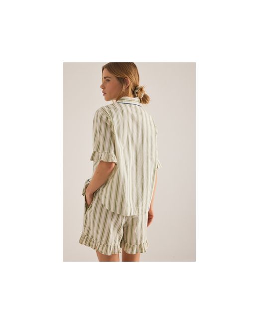 By TBCo 100% Cotton Set includes a button-front shirt and pull-on shorts Chest patch pocket Logo embroidery Side seam pockets Ruffle trims Machine wash Imported Stripe Short Pyjama Set by TBCo Size: XS, Cotton at Anthropologie