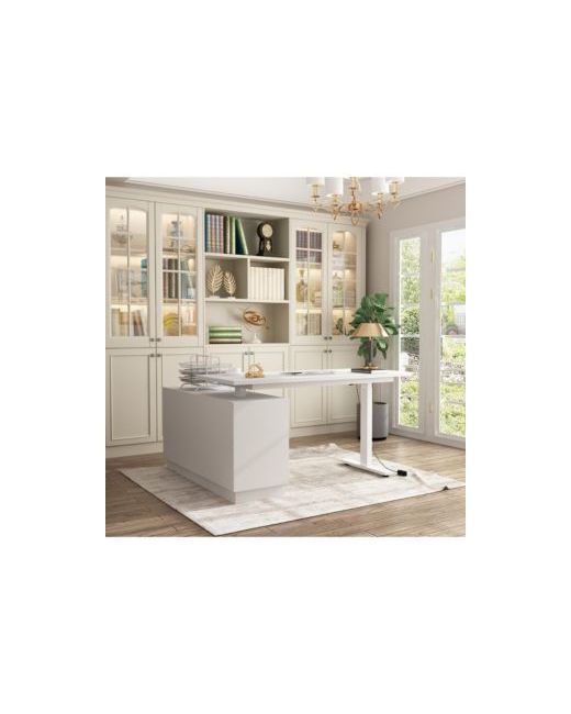 This adjustable corner table is a furniture that combines practicality and flexibility, designed specifically for modern home environments. The overall size of this desktop is 54.3x22.8 inches, providing spacious desktop space suitable for various purposes such as a workbench, dining table, or study desk. The table has a lifting function, with a minimum desktop size of 29.5 inches and a maximum height of 44.5 inches, meeting the needs of users of different heights. The stability and durability of the table, equipped with iron table legs and interchangeable side cabinets, increase the convenience of use.