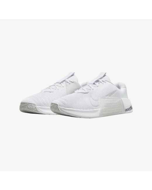 Brand: Nike Style Code: DZ2617‑103 Model: Metcon 9 Colorway: White / White / Pure Platinum / Pure Platinum Gender: Men Type: Training Sneakers Upper Material: Breathable mesh Sole Material: Dual‑density foam midsole with Hyperlift plate; rubber outsole