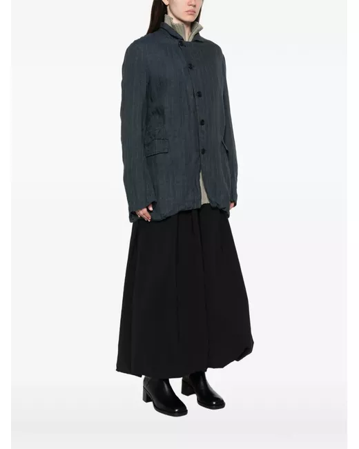 blue striped linen button fastening front pockets round collar buttoned cuffs relaxed fit
