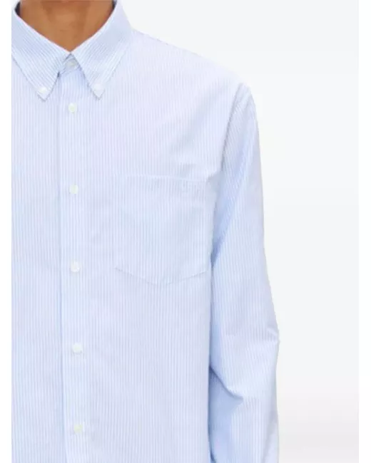 light blue vertical stripe button closure pointed collar chest pocket cotton