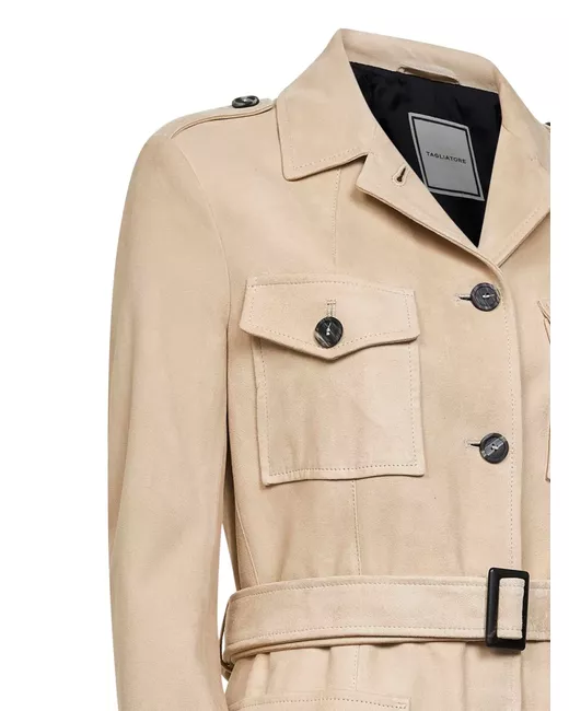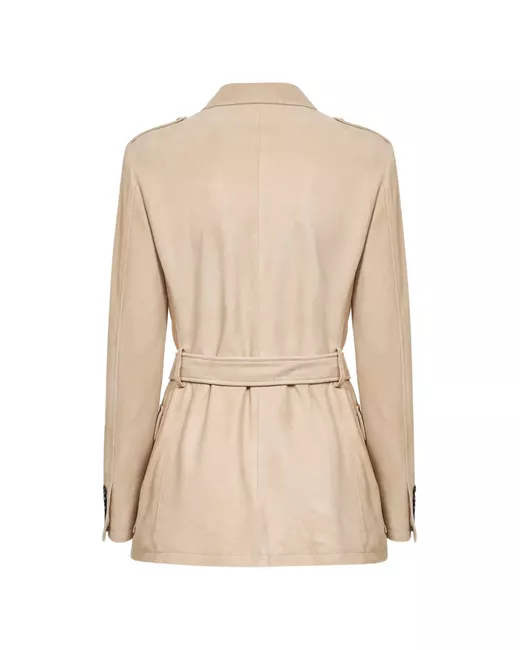 sand beige shirt collar buttoned epaulettes belt waist buttoned flap pockets