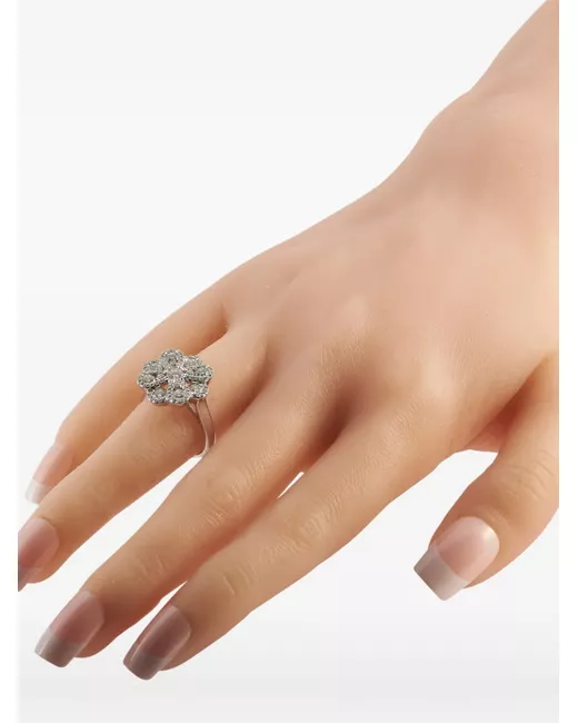14k white gold floral design prong-set round-cut diamonds totalling 1.89 carats Normal everyday use and external agents may reduce the lustre of gemstones and gold surfaces. To maintain, use specific, non-abrasive products specially meant for cleaning jewellery. Condition: EXCELLENT. This previously owned item is in near-perfect condition with no signs of damage or use. Your purchase will arrive with a gift box.