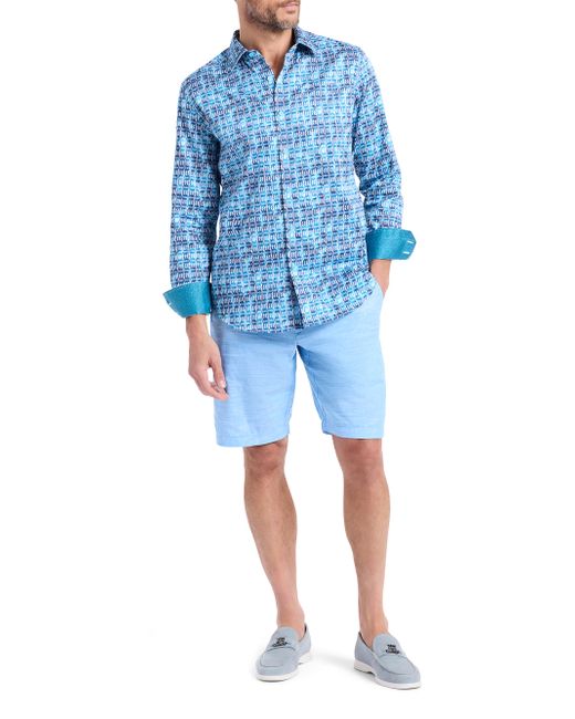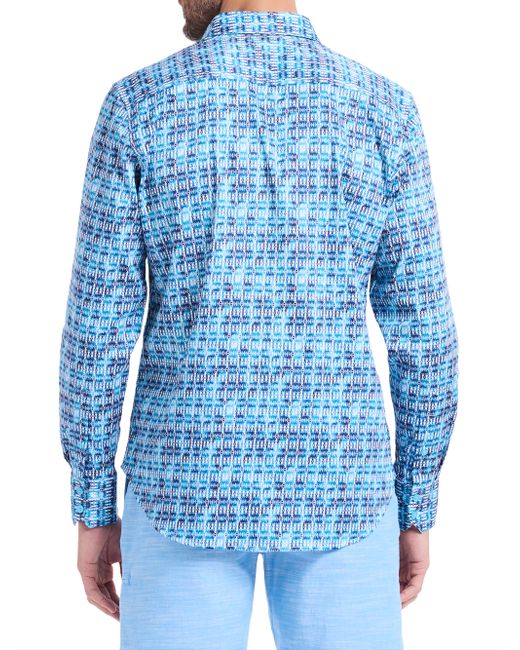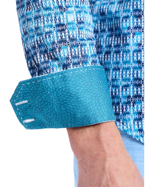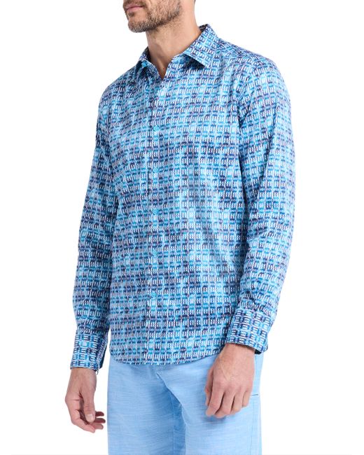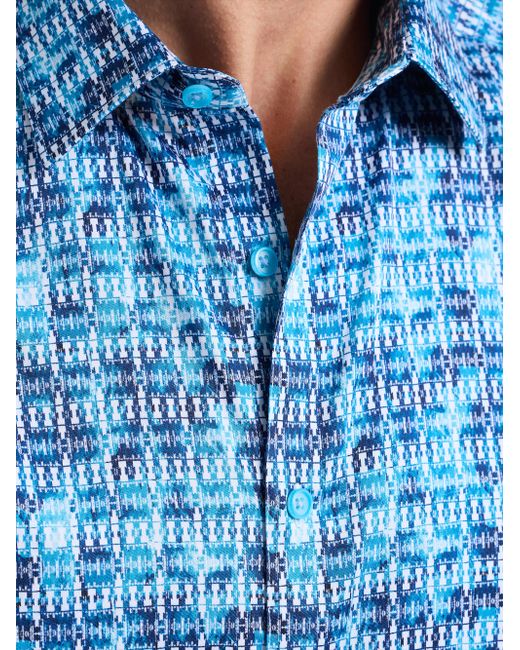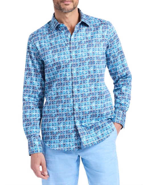 Crafted of a stretch cotton, the Westmoreland button-front shirt from Robert Graham features a bold geometric print. Point collar Long sleeves, button cuffs Shirttail hem Button-front closure 97% cotton/3% spandex Machine wash cold Imported SIZE & FIT Model measurements: 6'2" tall, 40" chest, 31" waist Model is wearing a US size Medium. Mens Modern Coll & Outer - Contemp Classic Collecti > Robert Graham > Saks Fifth Avenue. Robert Graham. Color: Blue. Size: Small.