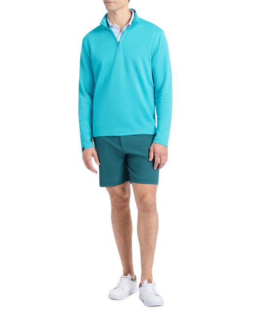 The Troland quarter-zip pullover from Robert Graham is crafted of a cotton-blend performance fabric, featuring a mock turtleneck and signature RG detail at the side. Mock turtleneck Long sleeves Front zip closure 62% cotton/38% polyester Machine wash Imported SIZE & FIT Model measurements: 6'2" tall, 40" chest, 31" waist Model is wearing a US size Medium. Mens Modern Coll & Outer - Contemp Classic Collecti > Robert Graham > Saks Fifth Avenue. Robert Graham. Color: Peacock Blue. Size: Small.