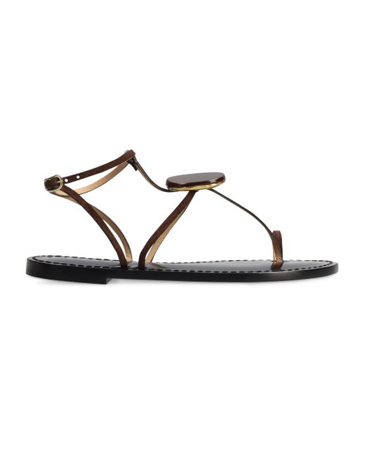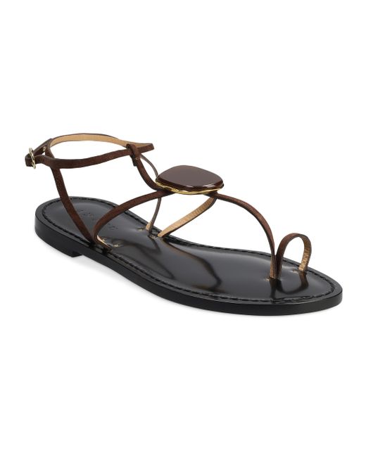 Crafted of leather, the Cairo sandals from Amanu feature resin stones set in brass casings, showcasing a refined balance of natural and polished elements. Open toe Buckle closure Leather upper Leather lining Leather sole Imported. Women's Shoes - Adv Contemporary W Shoe > Amanu > Saks Fifth Avenue. Amanu. Color: Chocolate. Size: 5.