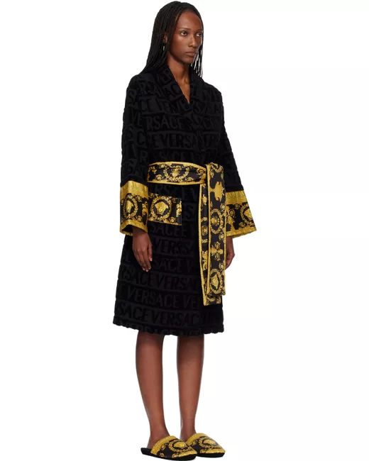 Cotton terrycloth bathrobe. · Jacquard logo pattern and Barocco poplin trim throughout · Shawl collar · Belt loops with detachable self-tie belt · Patch pockets at waist · Dropped shoulders Supplier color: Black