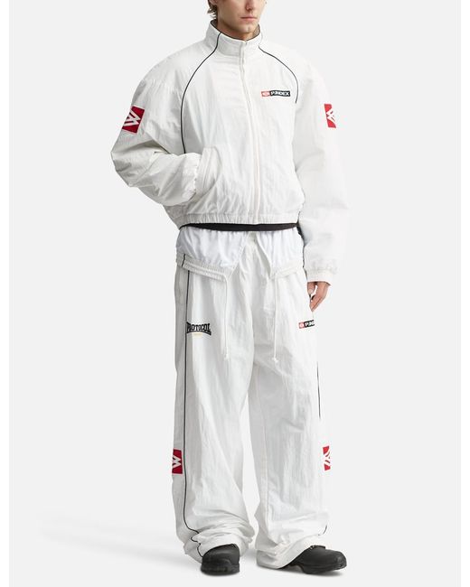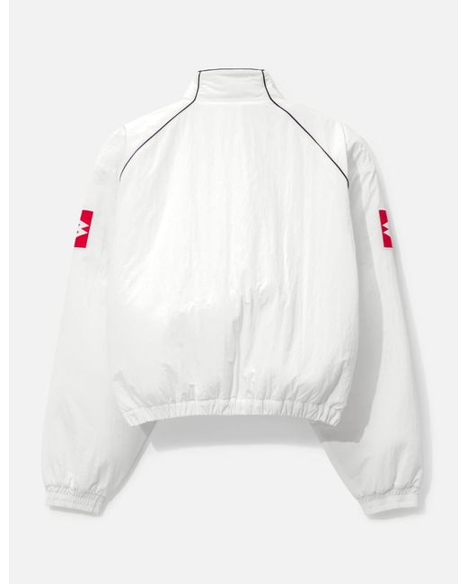 Protocol-IndexExaggerated Shoulder Track JacketMade of cottonHigh neckZipper closureExaggerated shoulder designRaglan sleevesElasticated cuffs and hemEmbroidered brand logo at sleeves and chestTwo zipper front pocketsMesh liningColor: White