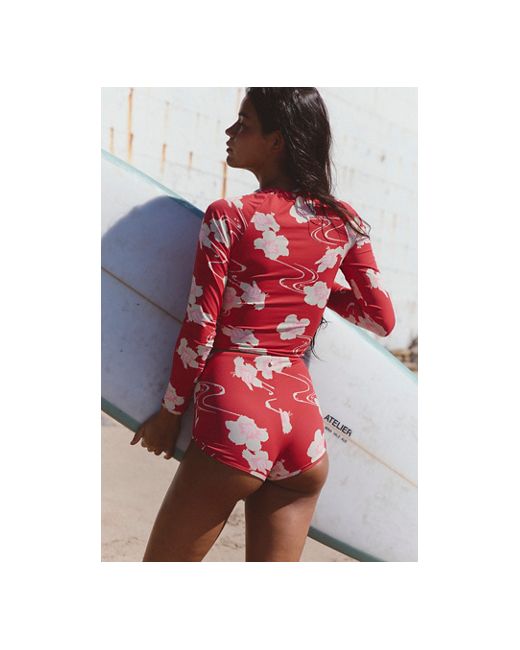 Get the sun protection you need with this long sleeve top, featuring a smooth fabrication made with recycled material and a cropped silhouette with a flattering, wide scoop neck. **Fit:** Fitted; cropped silhouette; scoop neck **Features:** Fabrication features recycled material; long sleeve for added sun protection; scoop neck; cropped silhouette hits just above waist **Why We Rhythm Long-Sleeve Surf Crop at Free People in Poppy, Size: Small