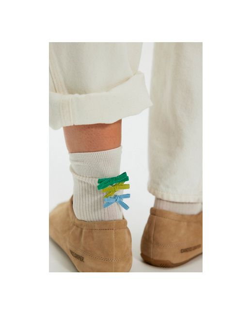 A playful take on a classic crew sock, this ribbed pair is finished with delicate embroidered ribbon accents for a fun touch. * Soft, ribbed knit construction * Crew-length silhouette * Embroidered ribbon detail at the ankle Isla Sock by Maria La Rosa at Free People in Off White