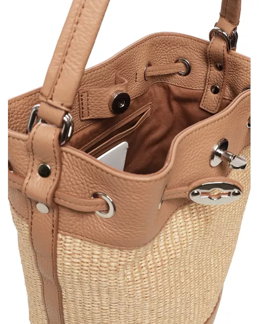 beige woven design top handle adjustable shoulder strap internal slip pocket drawstring fastening