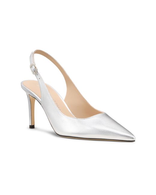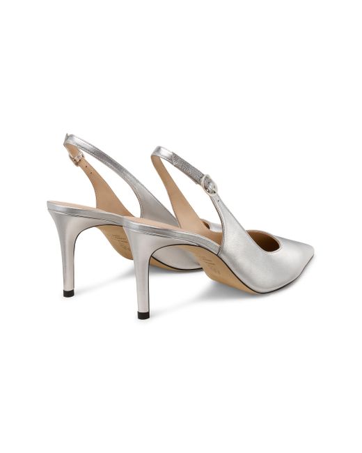 These Power slingback pumps from Stuart Weitzman, crafted of leather, are set atop a sleek 75mm stiletto heel. Point toe Buckle closure Leather upper Leather lining Leather sole Made in Spain SIZE Stiletto heel: about 3'' (75mm) ABOUT THE BRAND Designer Stuart Weitzman started his career designing for his father's shoe company, before launching his own brand in 1986. Known for his glamorous pumps and over-the-knee boots, Weitzman has also incorporated unique materials in his designs, ranging from Lucite and wallpaper to cork, vinyl and even gold. Today, the label continues to create classic, feminine silhouettes that balance both comfort and style. Women's Shoes - Stuart Weitzman W Shoes > Stuart Weitzman > Saks Fifth Avenue. Stuart Weitzman. Color: Silver. Size: 5.