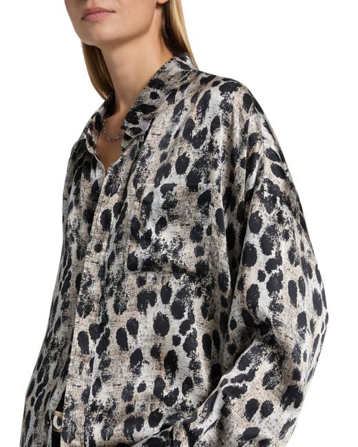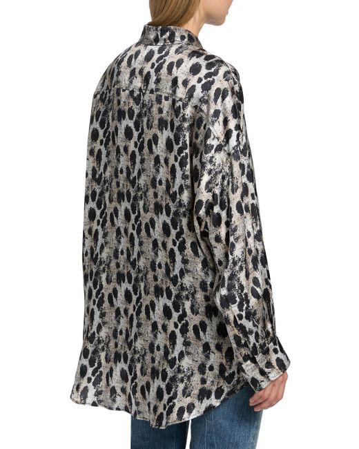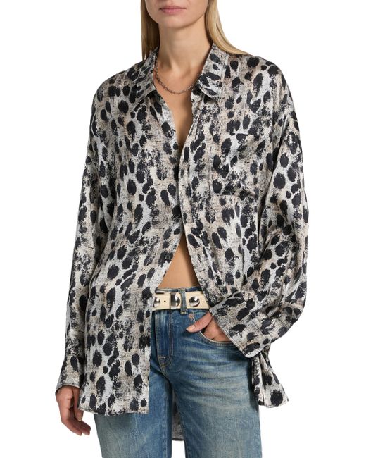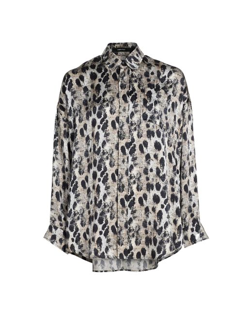 This shirt from R13 is crafted of silk and features a printed design, drop shoulders, and a shirttail hem. Point collar Long sleeves, button cuffs Chest patch pocket Button-front closure 100% silk Dry clean Imported SIZE & FIT About 31" from shoulder to hem Model measurements: 5'10" tall Model is wearing a US size Small. Contemporary Sportswear - Workshop > R13 > Saks Fifth Avenue. R13. Color: Black Silver Leopard. Size: XXS.