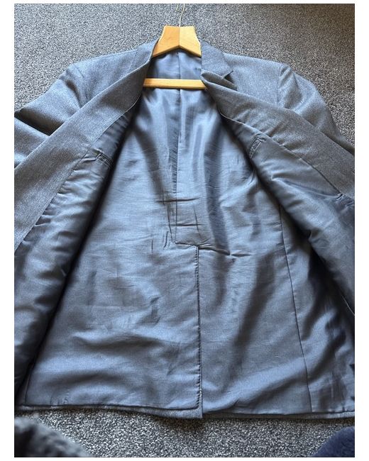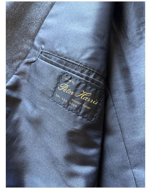 This hand-made tailored suit by Peter Harris in England is a sophisticated and professional choice for any business occasion. Made from wool tweed, the suit features a regular length jacket with a flat front design and two-button double-breasted closure and one vent on the back. The jacket has a chest size of 42 inches and a waist size of 39 inches, with a straight leg style and a 28-inch inside leg length. The grey colour and notch lapel add a touch of elegance to this classic 2-piece suit that is sure to make a statement.