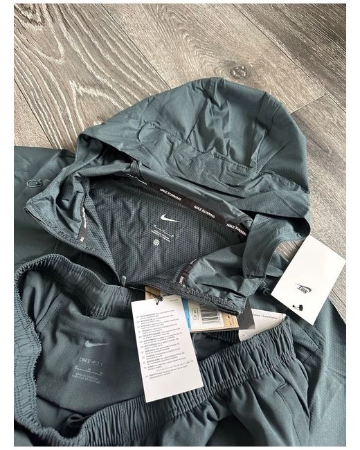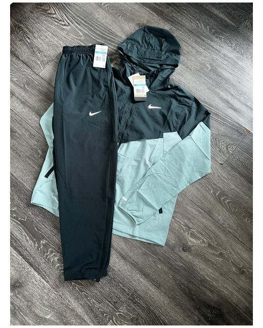 The Nike Miler Windrunner Jacket Challenger Joggers Tracksuit in dark green and mint colour, size M, is a stylish and comfortable 2-piece set perfect for sports activities. Made of polyester fleece material, the set includes a long sleeve jacket with the iconic Nike logo accent. The tracksuit is designed for winter wear, with a jogger style and a sporty theme, making it ideal for men looking for activewear that combines style and functionality. Machine washable and in size regular, this tracksuit is a versatile addition to any man's wardrobe.