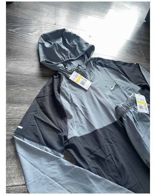 The Nike Miler Dri Fit Windrunner Jacket Challenger Shorts Tracksuit in Grey and Black is a stylish and practical set perfect for active men. Made from polyester fleece material, this 2-piece tracksuit is designed for comfort and performance during various sports activities, such as gym training, cycling, and basketball. The jacket features long sleeves and the iconic Nike logo accents, while the shorts offer a sporty and stylish look ideal for summer workouts. Machine washable for easy care, this tracksuit set is a must-have for any man looking for quality activewear.